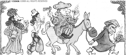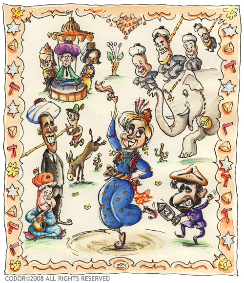 March 7, 2008 in cartoon, humor, jewish | Tags: cartoon, hillary, humor, jewish, politics, purim | by Richard Codor | Leave a comment