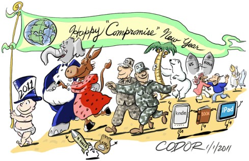 December 30, 2010 in cartoon, New Year | Tags: 2011 New Year, condoms, Democrats, don't ask don't tell, ipad, israelis, kindle, korea, palestinians, palm trees, polar bears, political humor, pope, republicans, russia, us | by Richard Codor